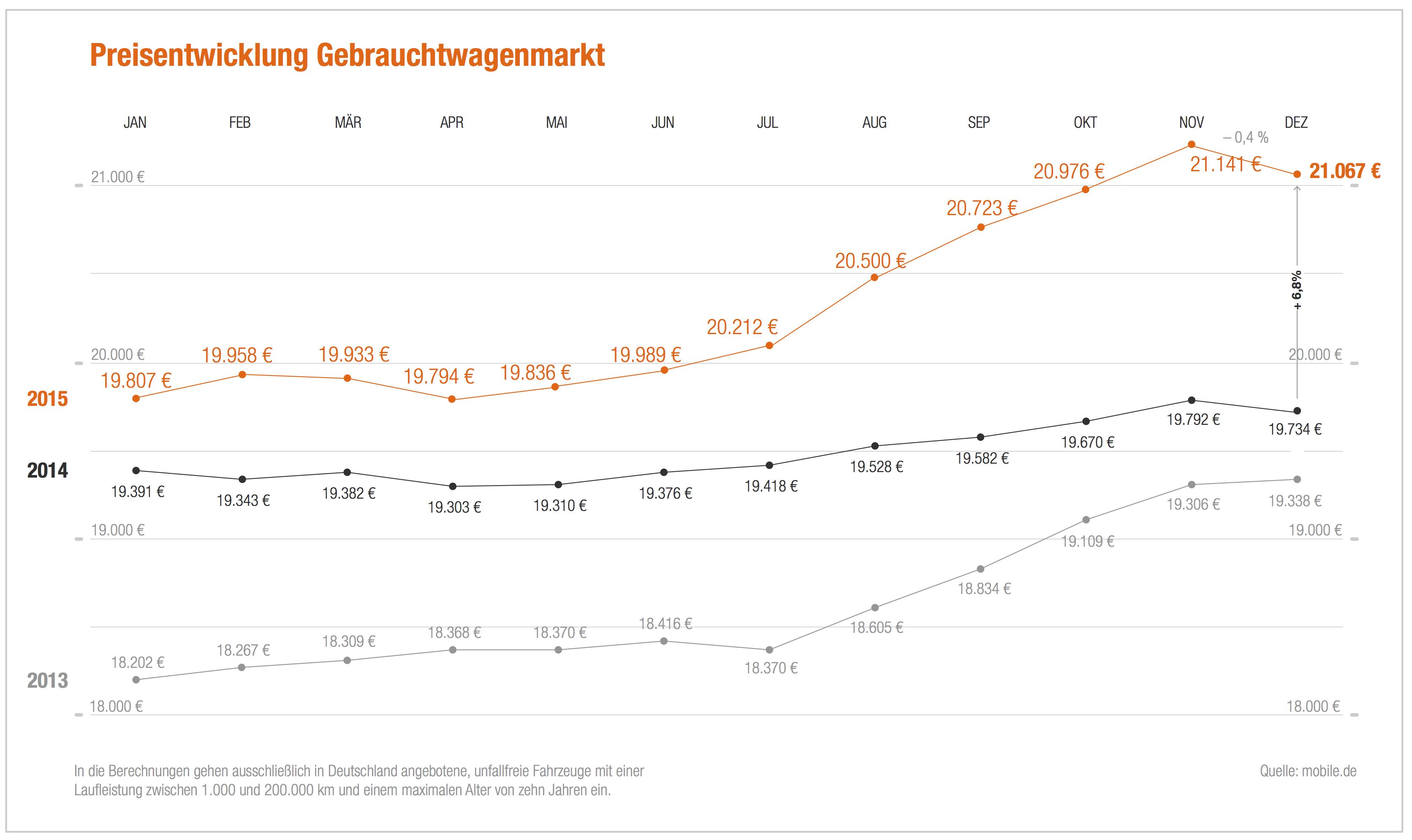 2015 war ein erfolgreiches Jahr für die Automobilbranche. Dies belegen die Zahlen vom deutschen Marktführer mobile.de. Die positive Bilanz des Kraftfahrt-Bundesamtes (Anzahl an Besitzumschreibungen Jan. – Nov.: + 3,7 Prozent ggü. Vorjahr) untermauert diese Einschätzung.